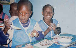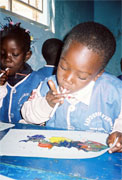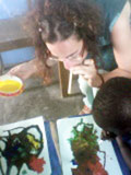 ici, opération papier mâché, attention ça colle!! c'est Marion qui lave les mains après!